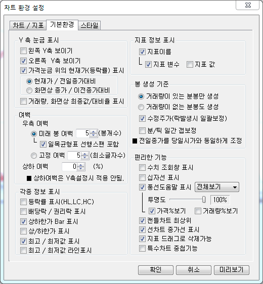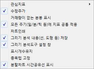 거래량이 없는 분봉 표시 : 거래량이 없는 분봉(허수봉)을 차트에 표시하는 기능