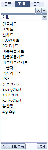 사용자가 자주 사용하는 지표를 등록하여 차트에서 지표를 쉽게 사용하는 기능입니다.