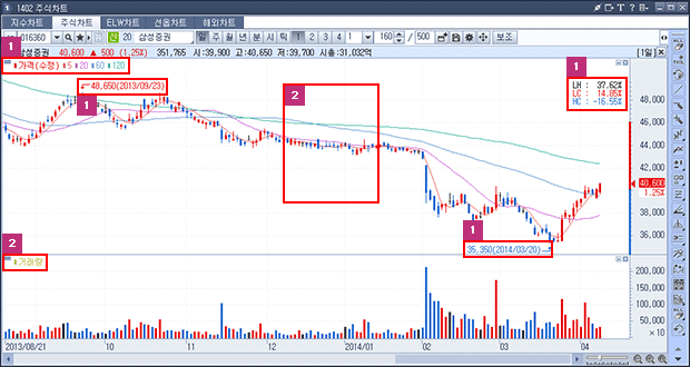 확대/축소 기능 : 차트 영역 내에서 마우스를 오른쪽 drag 하면 차트 영역이 확대 됩니다. 반대로 마우스를 왼쪽 drag 하면 차트 영역이 축소됩니다.