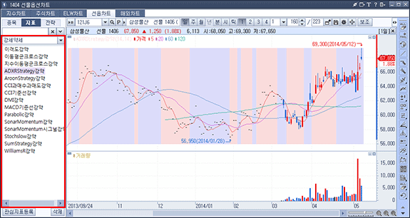 차트상단메뉴 중 보조기능 > 지표 전체적용 기능