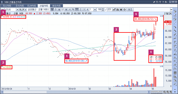 LH - 차트상에서 최저가 대비 최고가 등락률