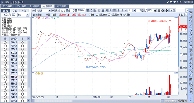 선물옵션차트는 여러종목을 동시에 분석하거나 한 종목을 여러 형태로 분석할 수 있는 멀티분석형 차트입니다. 또한 차트좌측에 종목/지표/시스템 메뉴를 배치하여 차트화면 내에서 여러 가지 기능을 적용할 수 있습니다.