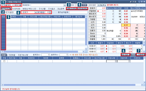 주문시 기본적으로 선택되는 가격을 선택할 수 있으며,주문 등록된 이후에는 주문수량,주문가격 란에서 적정 수량/가격을 변경 할수 있습니다.